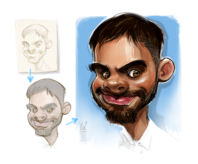 We start with a sketch of the people or subject matter and send you a draft of the caricature illustration for approval and feedback.